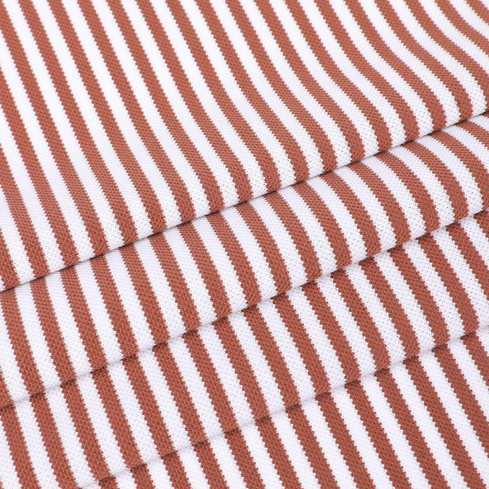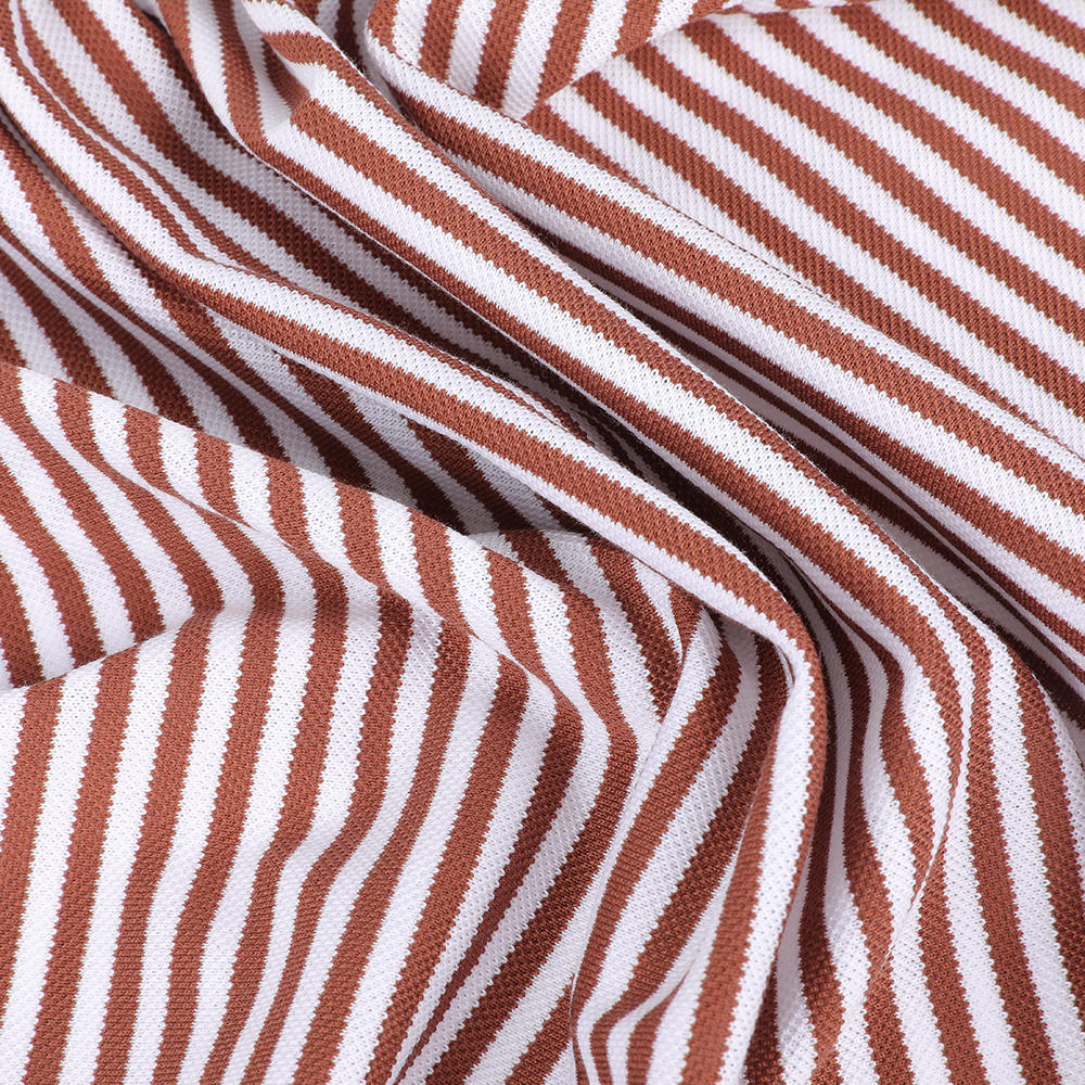 Pohodlná priedušná pikantná tkanina z bavlny LA pruhovaná tekutá tekutina amoniaku vhodná pre pólo v kombinácii s pokročilou technológiou úpravy tekutého amoniaku, jeho cieľom je priniesť používateľom profesionálnu úroveň pohodlia a trvanlivosti. Pearl Mesh Cotton tvorí sieťovú štruktúru s jedinečným procesom tkania, ktorý účinne zlepšuje priedušnosť a absorpciu vlhkosti tkaniny. Dokonca aj vo vysokorýchlostných prostrediach môže účinne odvrátiť pot, udržať pokožku v suchu a zlepšiť pohodlie nosenia. Zároveň má tkanina dobrú elasticitu a odolnosť proti opotrebeniu, zabezpečuje, aby oblečenie zostalo svieže a štýlové po dlhodobom opotrebení a nie je ľahké sa deformovať, čím uspokojuje dopyt používateľa po trvanlivosti odevov. Aplikácia technológie úpravy tekutého amoniaku ďalej zlepšuje kvalitu tkaniny. Zlepšením molekulárnej štruktúry bavlnených vlákien robí ošetrenie tekutého amoniaku mäkšie a plynulejšie, s jemným dotykom, pričom zvyšuje farebnú rýchlosť a odolnosť proti vráskam. To znamená, že používatelia sa môžu ľahko postarať o oblečenie bez žehlenia po umývaní a oblečenie je stále jasné a nové, šetrí čas a energiu. Pokiaľ ide o dizajn, tkanina prijíma klasické pruhované prvky, ktoré sú jednoduché veľkorysé a ľahko sa zhodujú.