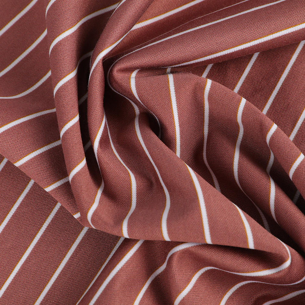 Pruhovaná pohodlná hodvábna bavlnená košeľová tkanina využíva prírodné výhody hodvábnych a bavlnených vlákien na vytvorenie jedinečnej vlákniny, ktorá si nielen zachováva lesk a jemný dotyk hodvábu, ale tiež kombinuje priedušnosť a trvanlivosť bavlny, čím sa efektívne zlepšuje pohodlie nosenia a schopnosť prispôsobiť sa viac sezónnym zmenám. Jeho dobrá výkonnosť absorpcie vlhkosti a potu môže účinne regulovať mikroklímu povrchu tela, udržať nositeľa suchý a pohodlný a udržiavať telo chladné dokonca aj vo vysokoteplotných prostrediach.